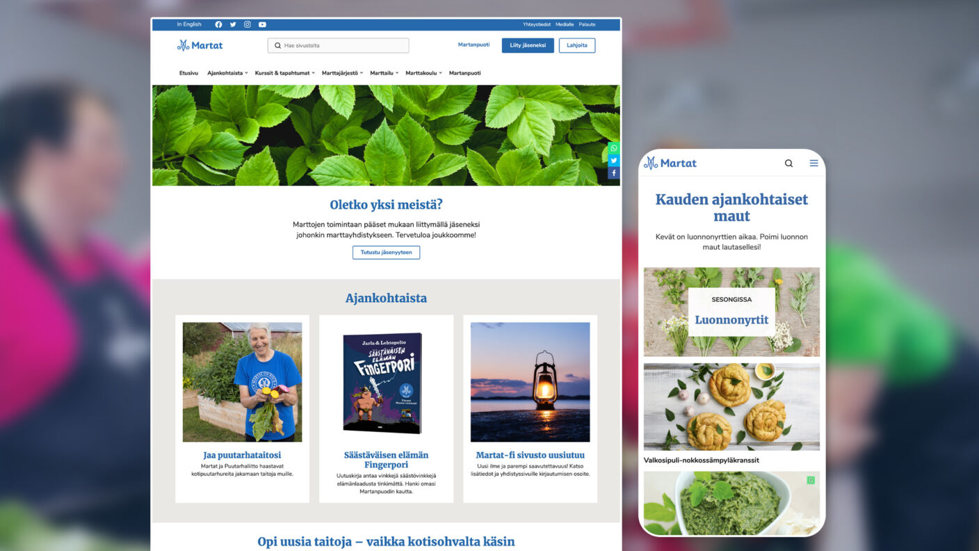 “Meille oli tärkeää tehdä sivustolle saavutettavuuteen liittyviä muutoksia. Halusimme myös muokata ulkoasun brändi-ilmeemme mukaiseksi”, kertoo Marttaliiton viestintäpäällikkö Henni Kuusisto.