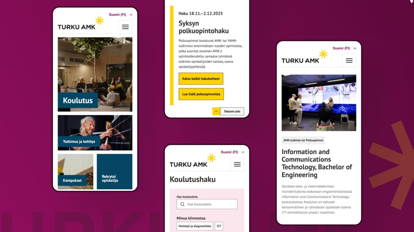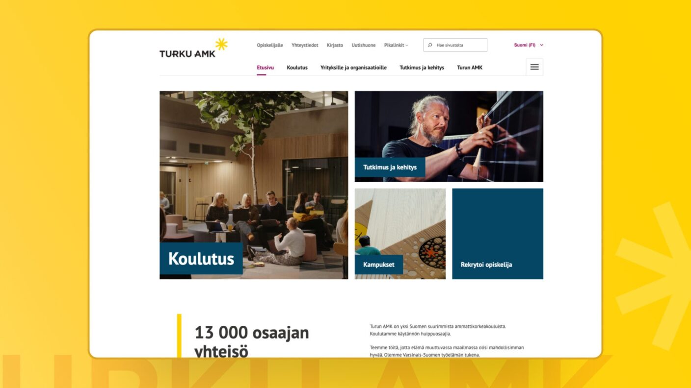 Turun ammattikorkeakoulu uudisti 10 vuotta vanhan verkkosivustonsa tavoitteena parantaa käyttökokemusta, sujuvoittaa sisällöntuotantoa ja houkutella uusia opiskelijoita. Uusi verkkopalvelu toteutettiin käyttäjälähtöisen konseptin, visuaalisen uudistuksen ja modernin, nykystandardit täyttävän WordPress-lohkoteeman pohjalta.