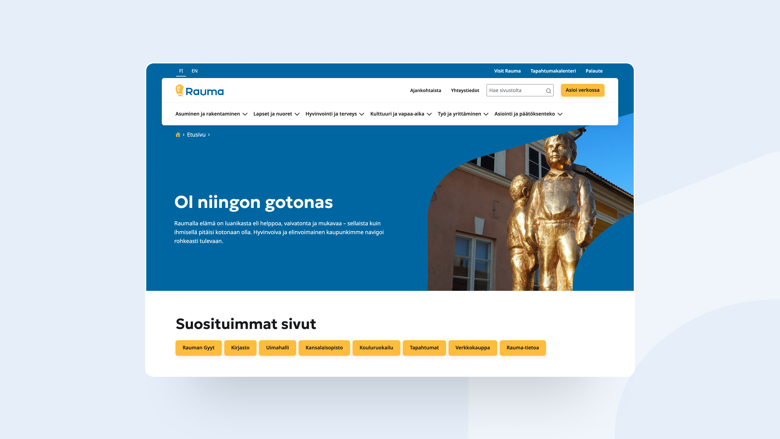 - kestävä ja ylläpidettävä: suurin osa sivustosta voidaan WordPressin vakiotyökaluilla ilman raskaita lisäosia ja riippuvuuksia